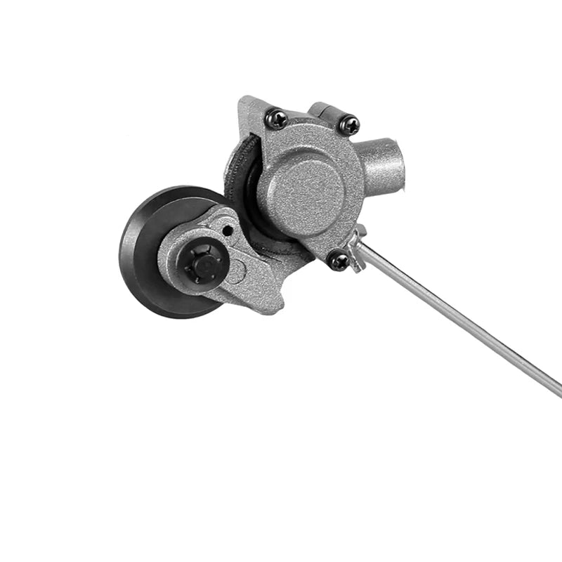 2 - Ajuste la holgura del cabezal de la cuchilla: Gire el tornillo lateral pequeño para ajustar la separación correcta de las cuchillas según el grosor de la chapa.