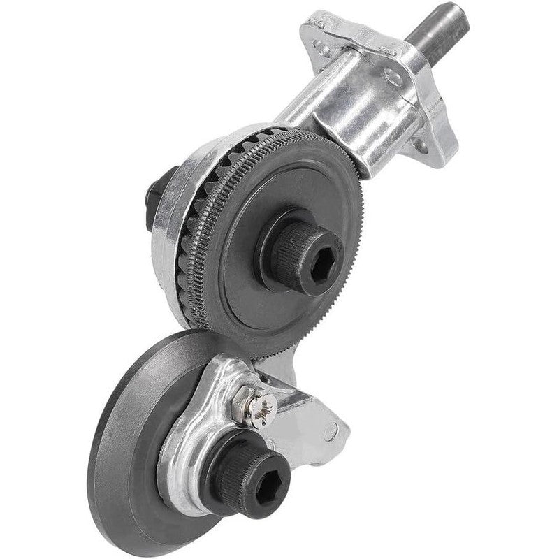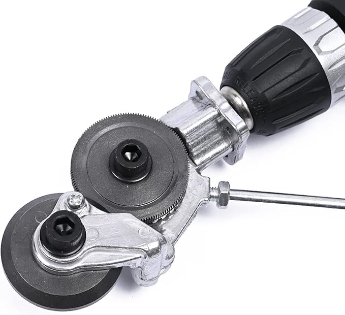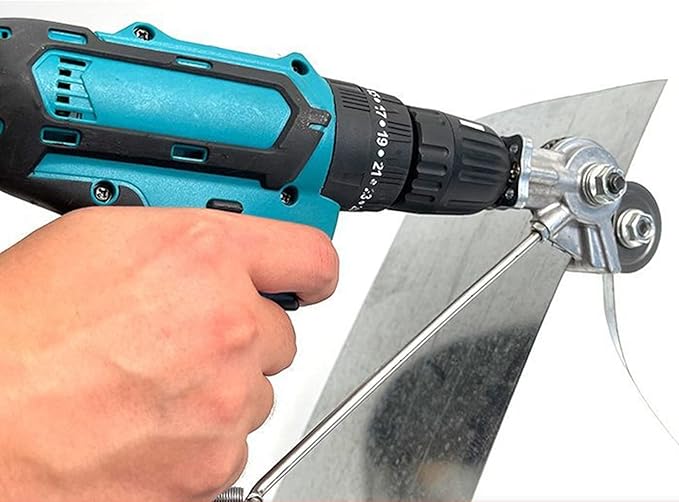 Las herramientas viejas para cortar metal son pesadas y peligrosas. Este cortador de chapa de doble cabezal hace cortes rápidos, precisos y sin esfuerzo. Solo se acopla al taladro y corta hierro, acero, cobre o aluminio sin rebabas. Perfecto para bricolaje, reparaciones o trabajos de taller.